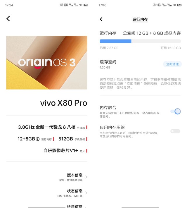 想讓手機更流暢,App運行環境自然也要進行相對應的優化。OriginOS 3首先優化了大家熟悉的內存融合功能,將系統原本的RAM和ROM通過算法來進行進一步的優化融合,將一部分閑置的ROM空間借給RAM來運行應用,以達到擴展運存的目的。